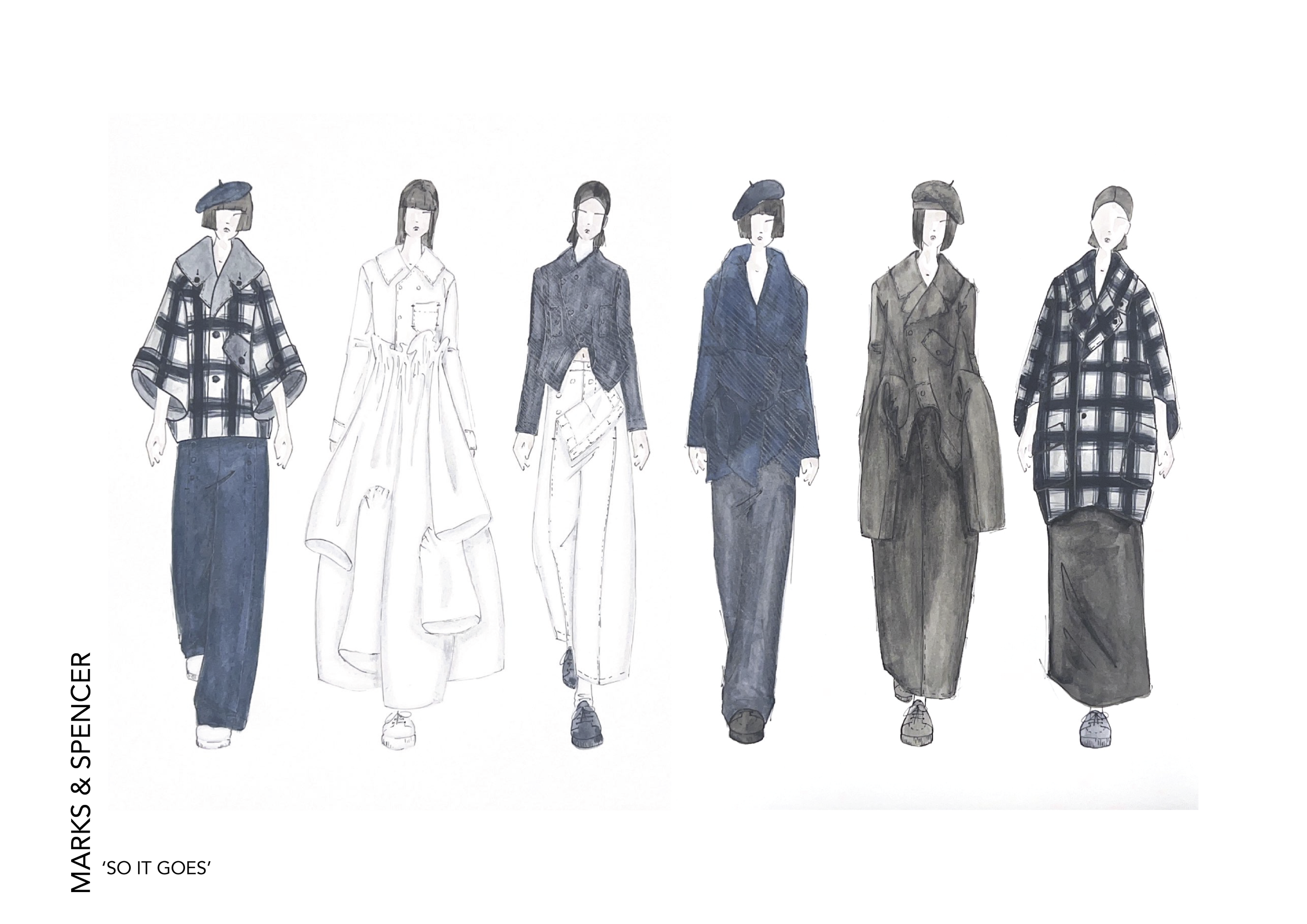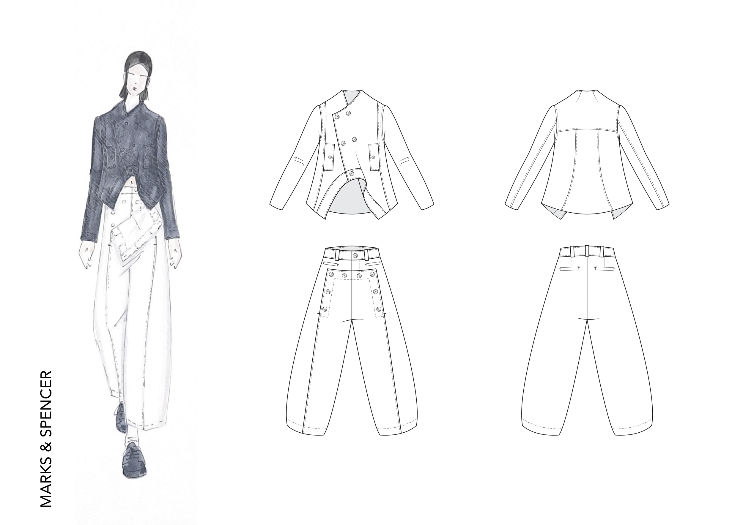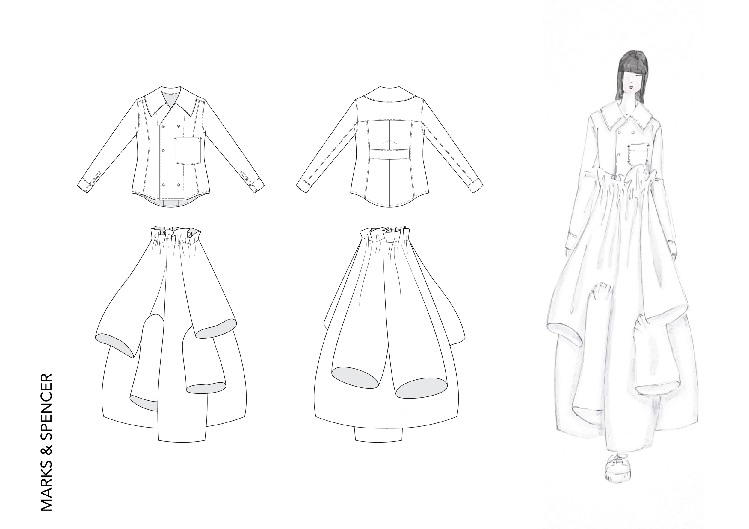This project, sponsored by Marks & Spencer, comprises two components: a design endeavor and a pattern cutting challenge. Our objective was to infuse avant-garde flair into an iconic coat from our collection. Generously, M&S provided fabric to Kingston School of Art London for the creation of our garments.