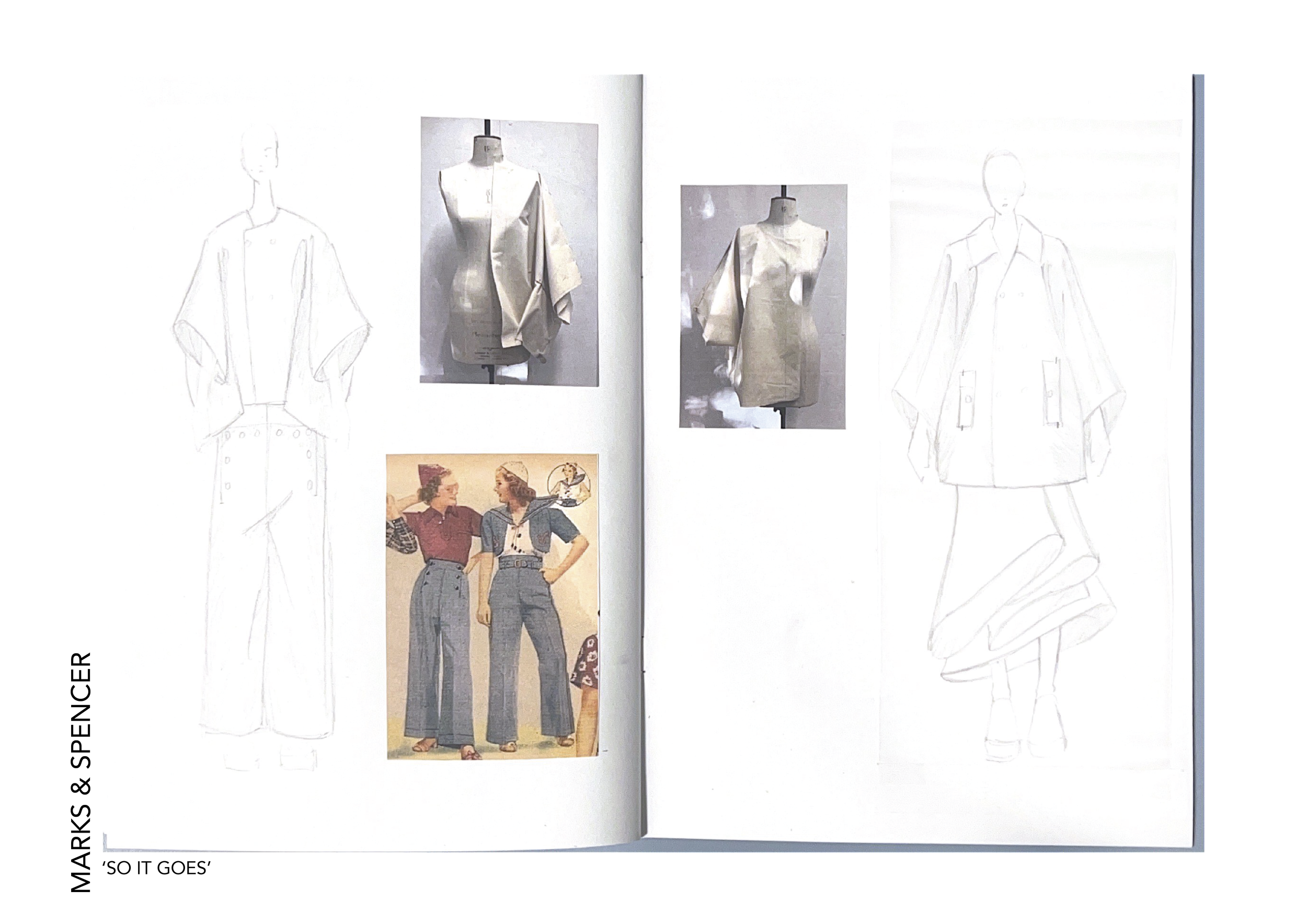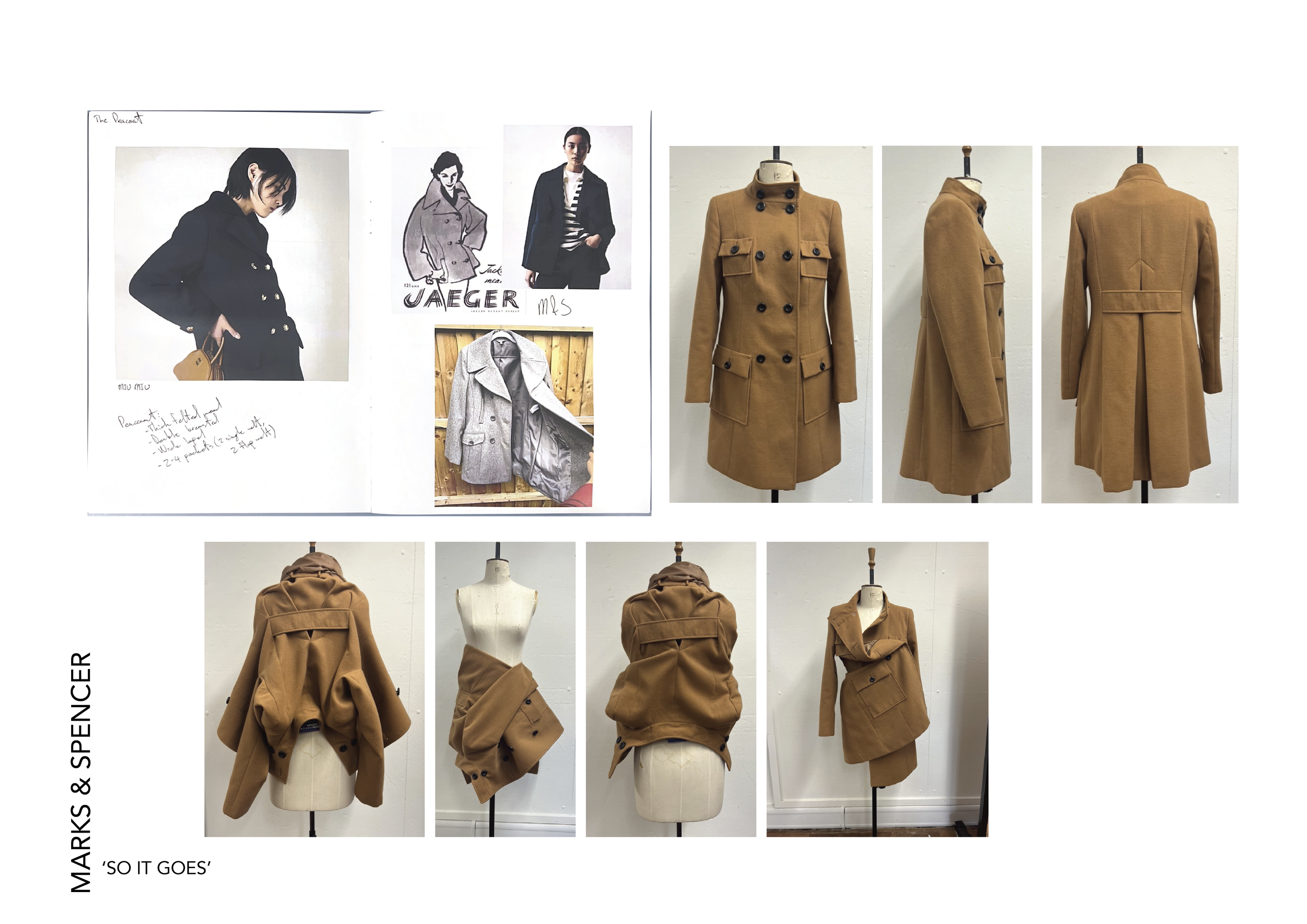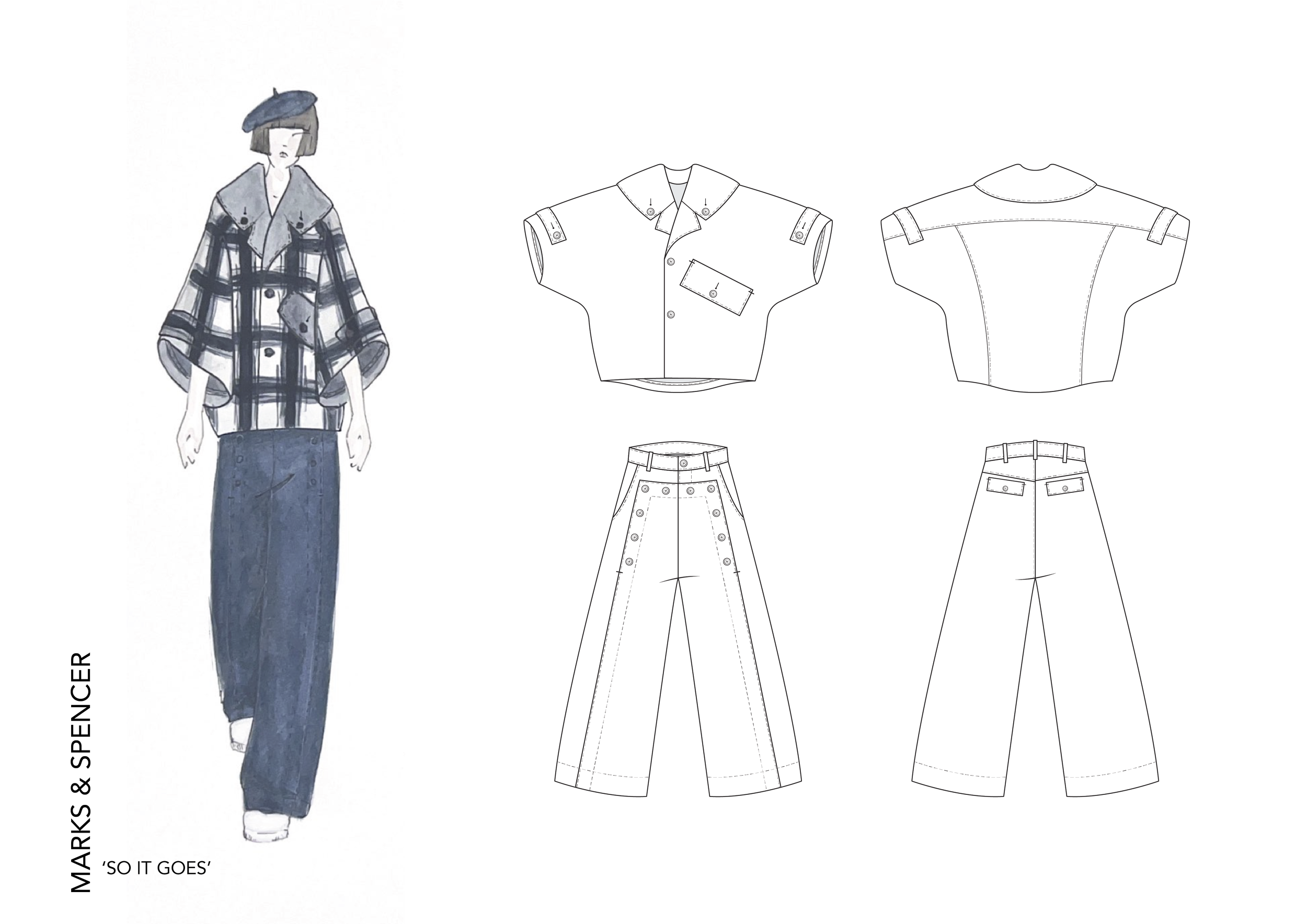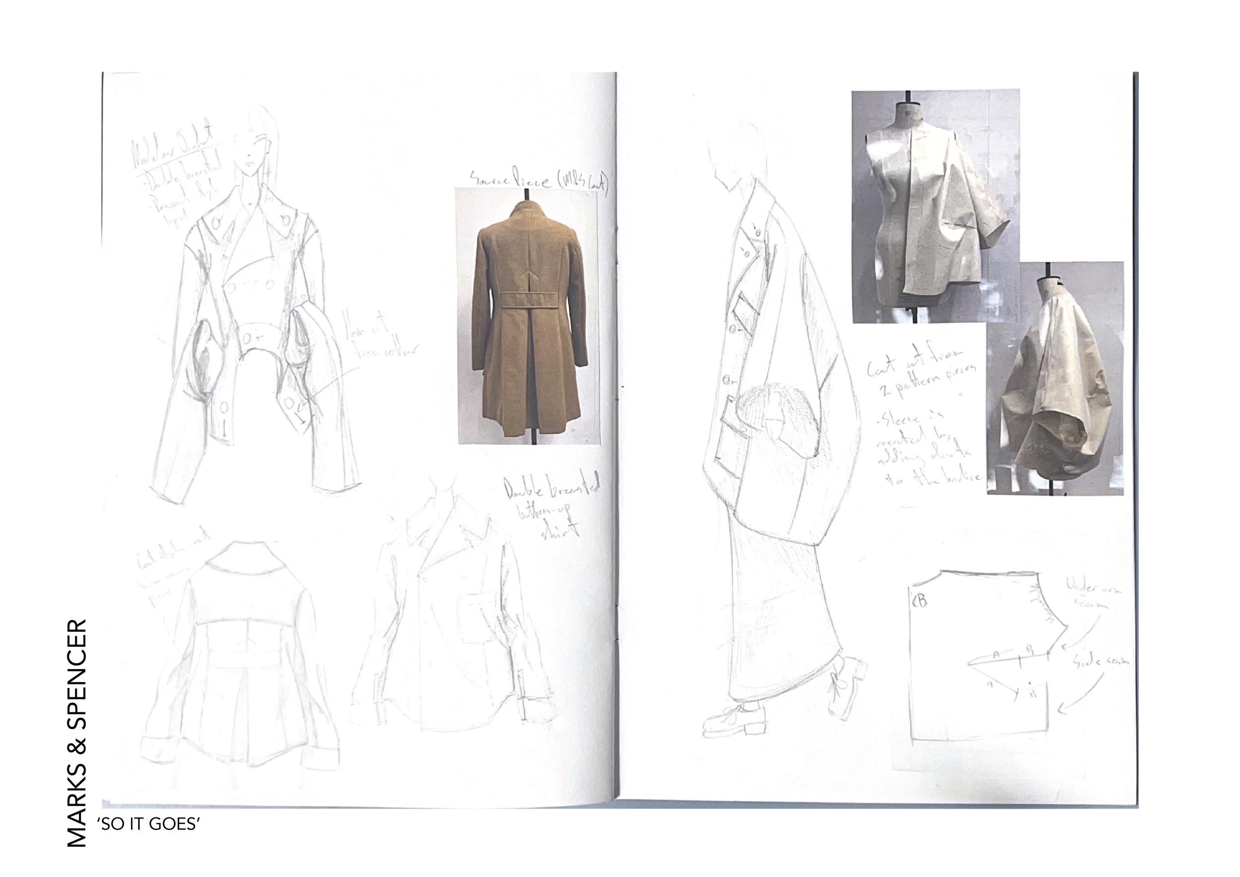 This project, sponsored by Marks & Spencer, comprises two components: a design endeavor and a pattern cutting challenge. Our objective was to infuse avant-garde flair into an iconic coat from our collection. Generously, M&S provided fabric to Kingston School of Art London for the creation of our garments.