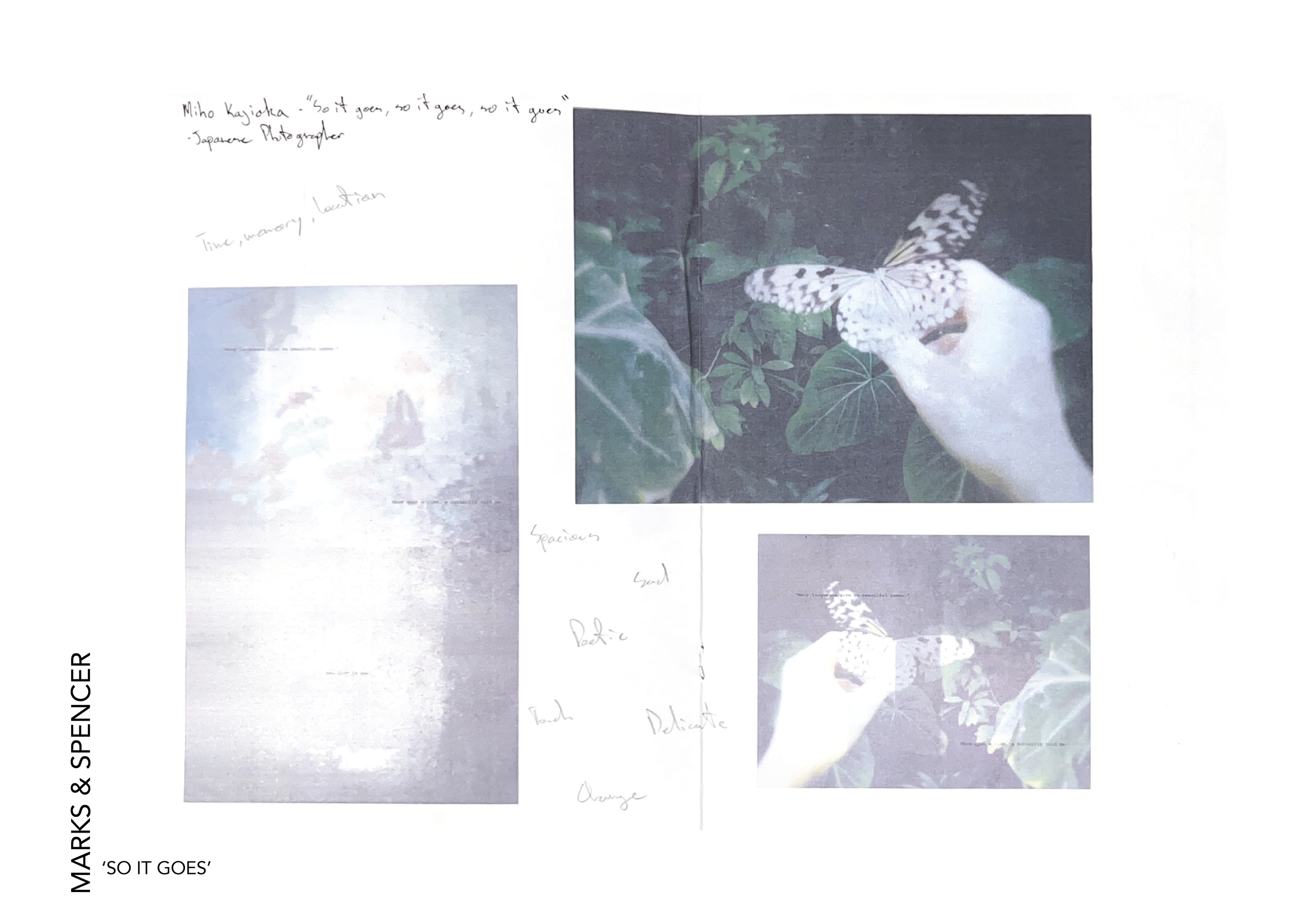 Time, memory, and location: these are the concepts explored by Japanese photographer Miho Kajioka in her book “so it goes, so it goes, so it goes.” The images, printed on transparent paper, carry a sadness, beauty, and intimacy that evoke a sense of nostalgia from the viewer. As each page is turned, the images are layered over one another, bilaterally creating a new composition. The old images slowly fade and morph into new ones, akin to how memories change with the passing of time.
